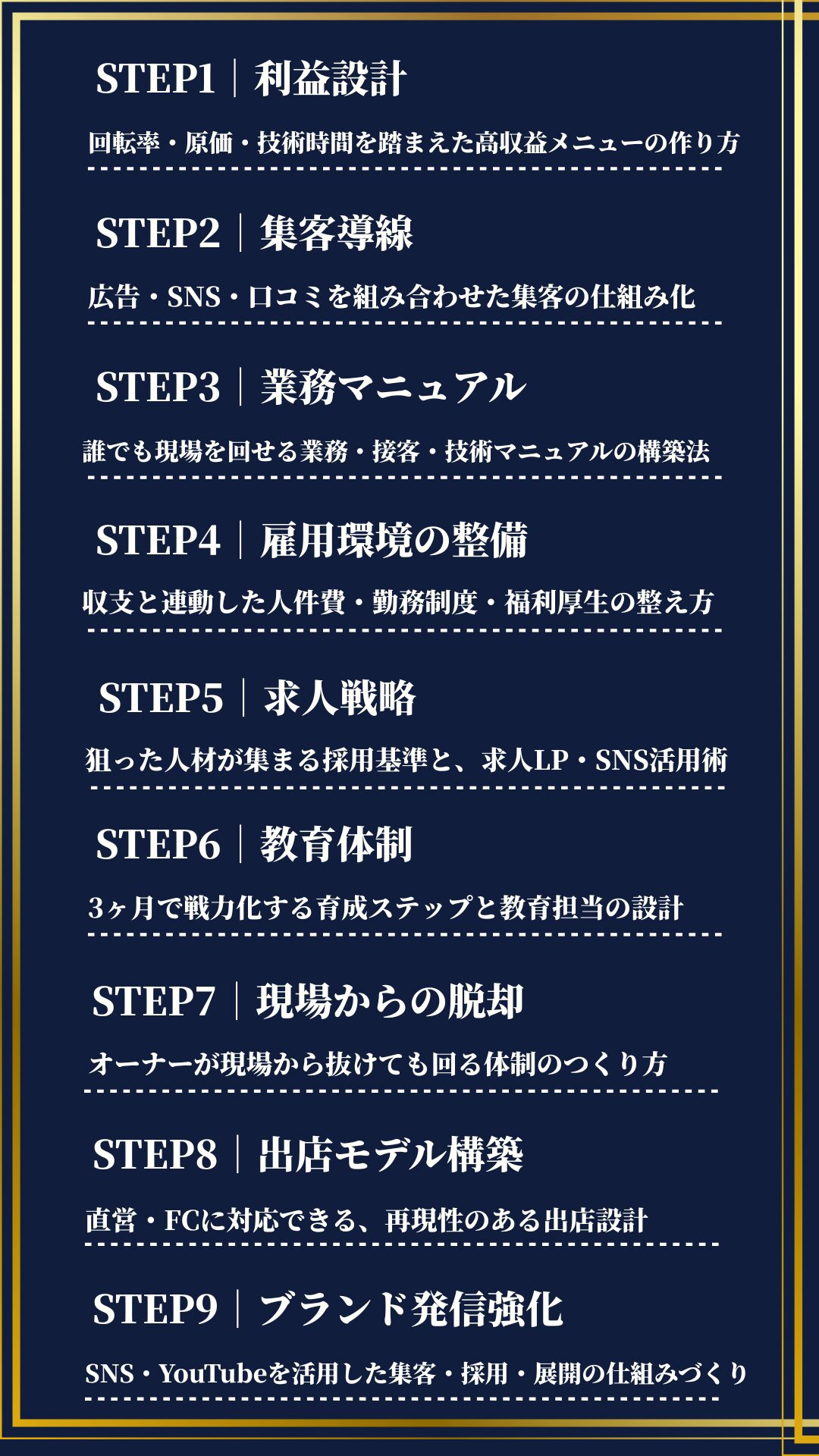 オーナーの現場卒業を目指したい方